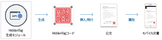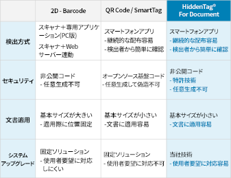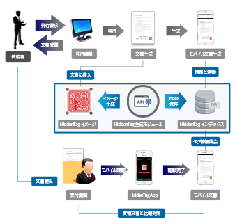 これによって文書が偽造された時はコピーされたHiddenTagから、原本文書のデータが検出され文書の内容と不一致します。