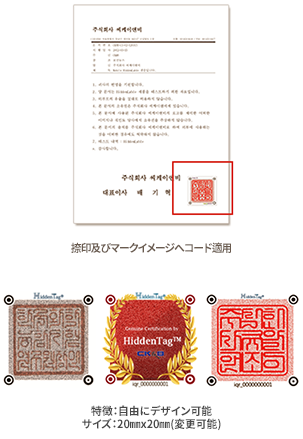 HiddenTag® For Documentは多様なイメージ(役印、マーク)を適用して偽造が確認できます。
