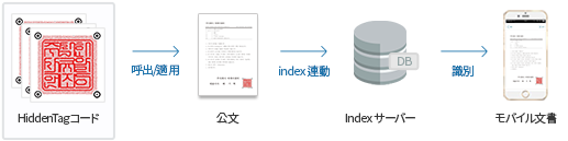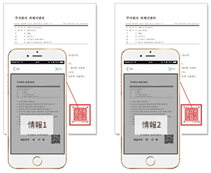 企業/役所の文書には必ず入る会社ロゴや役印自体に文書の原本が判断できる情報を挿入して、2Dバーコードのような 専用検出器がなくても、スマートデバイスを利用して簡単に検出することができます。