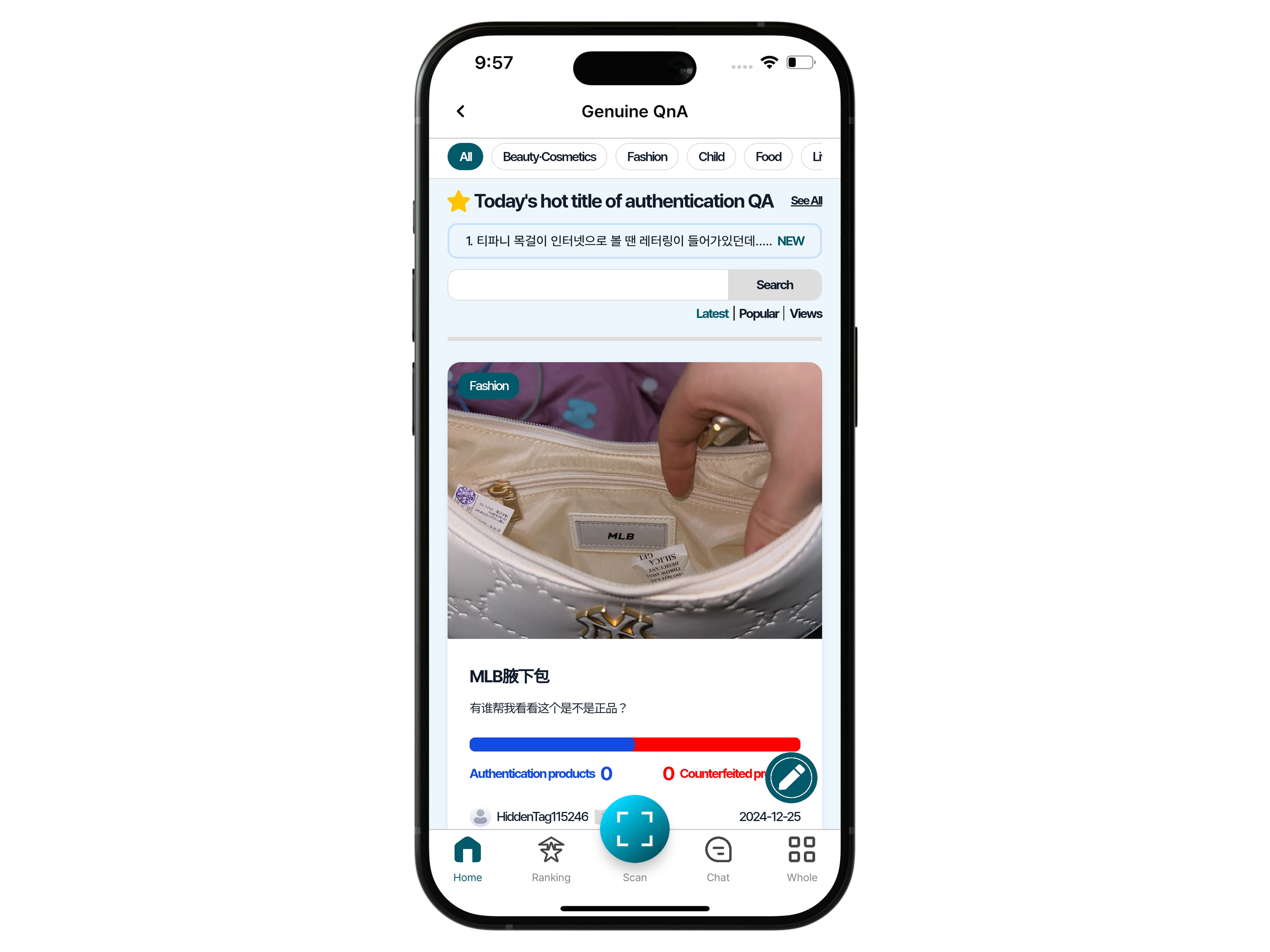 Проверьте подлинность продукта через целевую страницу, которая появляется после сканирования.