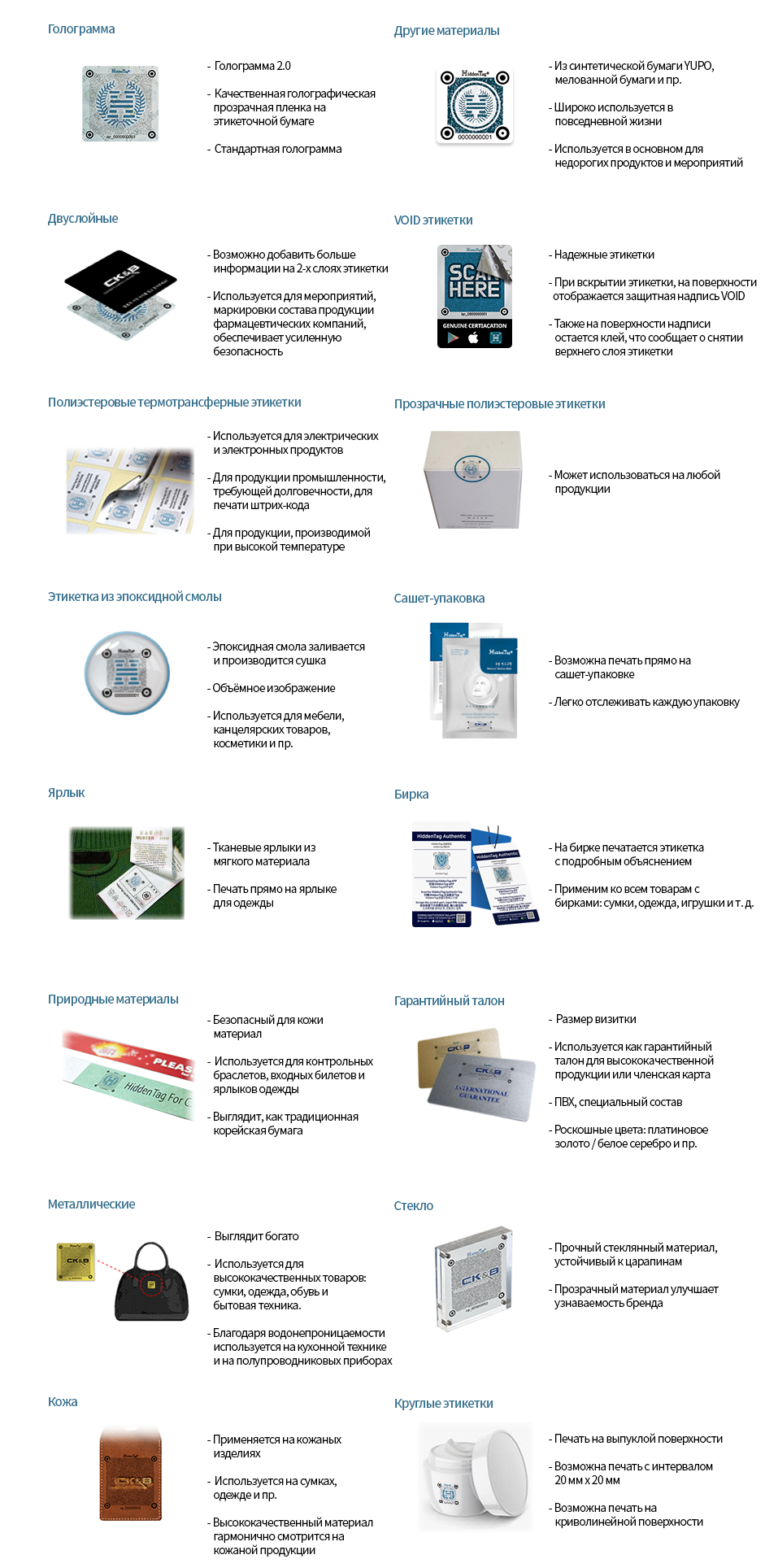 Доступны различные опции для создания высококачественных антиконтрафактных этикеток.