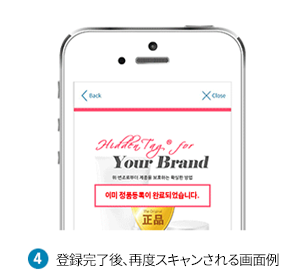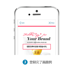 真贋判定サービスは消費者が自らのスマートフォンを利用して正規品確認ができるサービスです。また、真贋判定サービス以外にも商品情報、使用方法、A/Sなどを手軽に把握できます。