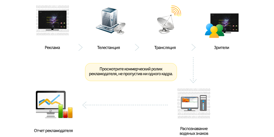 Мы предлагаем технологию HiddenTag for Broadcast, которая позволяет вставлять / распознавать водяные знаки в HD-трансляциях покадрово,