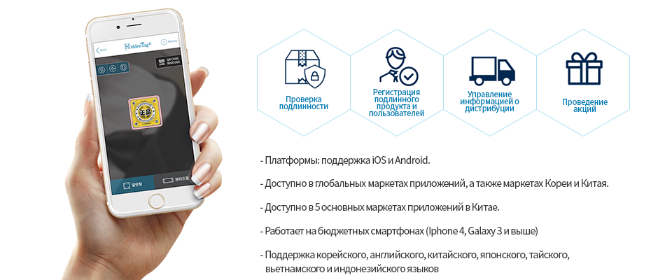 Hidden Tag - это многоуровневый сервис проверки подлинности, состоящий из визуальной проверки этикетки,проверки этикетки с помощью мобильного приложения и проверки данных сервером.