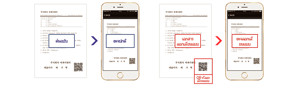สามารถตรวจสอบว่าเป็นการลอกเลียนแบบเอกสารหรือไม่ได้โดยง่ายผ่านแอปพลิเคชั่นบนสมาร์ทโฟน โดยไม่จำเป็นต้องติดตั้งโปรแกรมพิเศษอื่นๆ หรือแสกนเนอร์